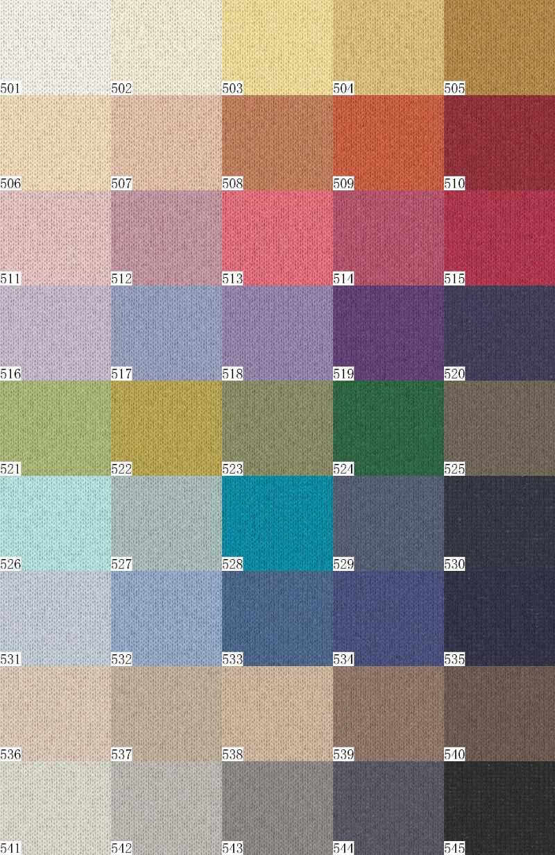 オーガニックジャムはミドルゲージを中心に、カジュアルからきれいめまで幅広い用途に対応可能な素材です。